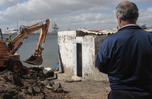 Este lunes por la mañana, operarios contratados por Puertos de Las Palmas llevaron a cabo el desalojo de la vivienda y procedieron al derribo de la edificación. Hace dos años ya se produjeron derribos en la zona, al igual que en abril de 2013.